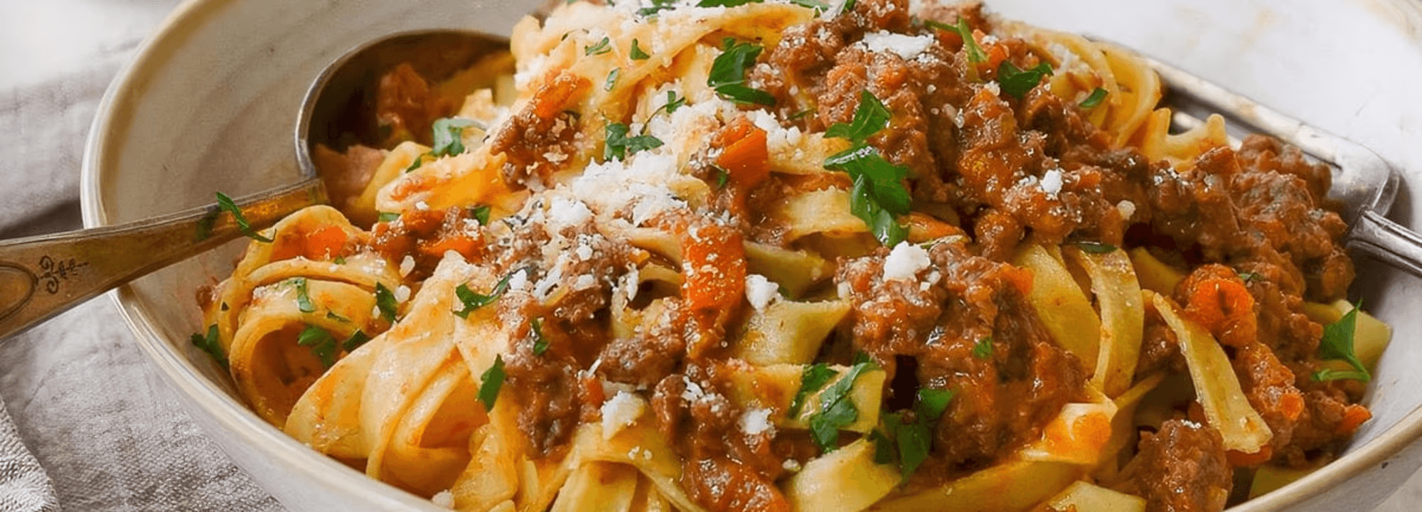 Hearty beef meat sauce over pasta. Flavorful, satisfying, and comforting. A classic Italian favorite.